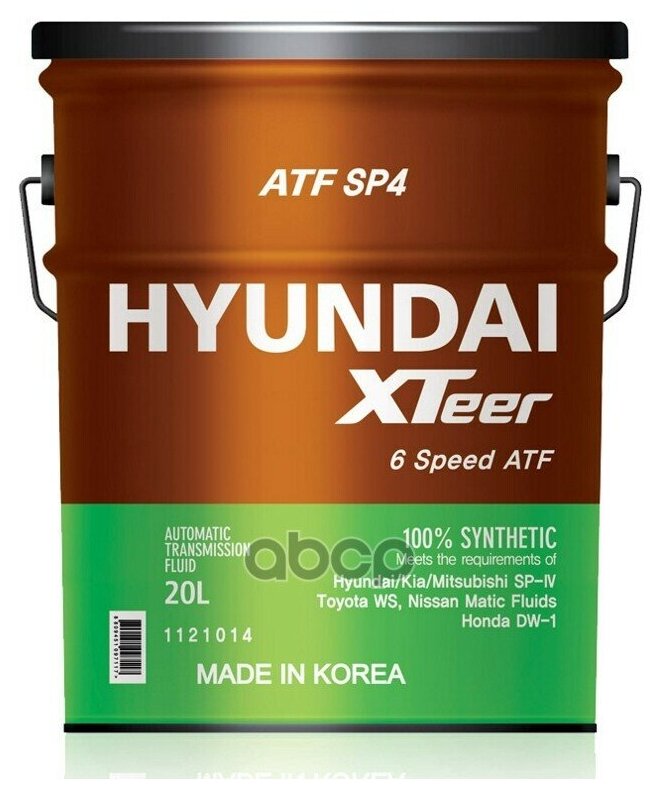 HYUNDAI-XTEER 1121014 Масло трансмиссион HYUNDAI XTeer 20л синтетика ATF SP4 (для 6 ступок) 1шт