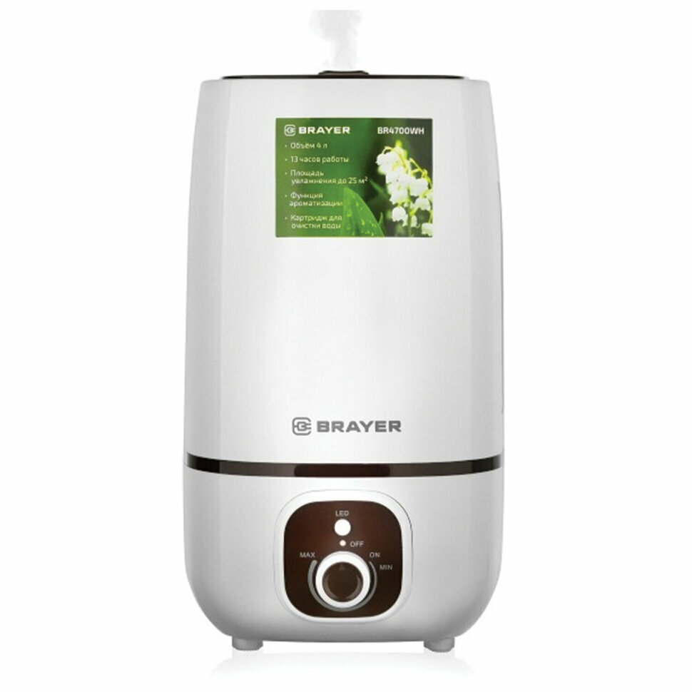 Увлажнитель BRAYER BR4700WH, объем бака 4 л, 25 Вт, арома-контейнер, белый