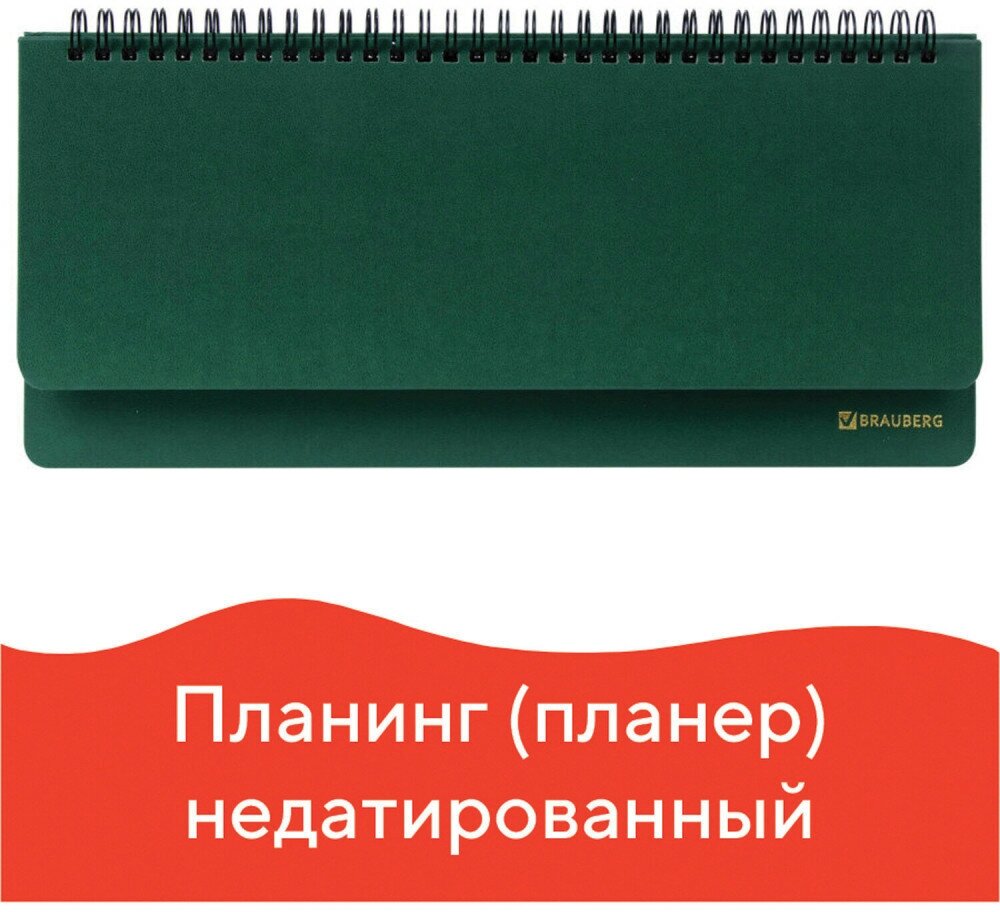 Планинг (ежедневник-планер), записная книжка, блокнот недатированный настольный горизонтальный (305x140 мм) Brauberg балакрон, 60 л., зеленый, 111695