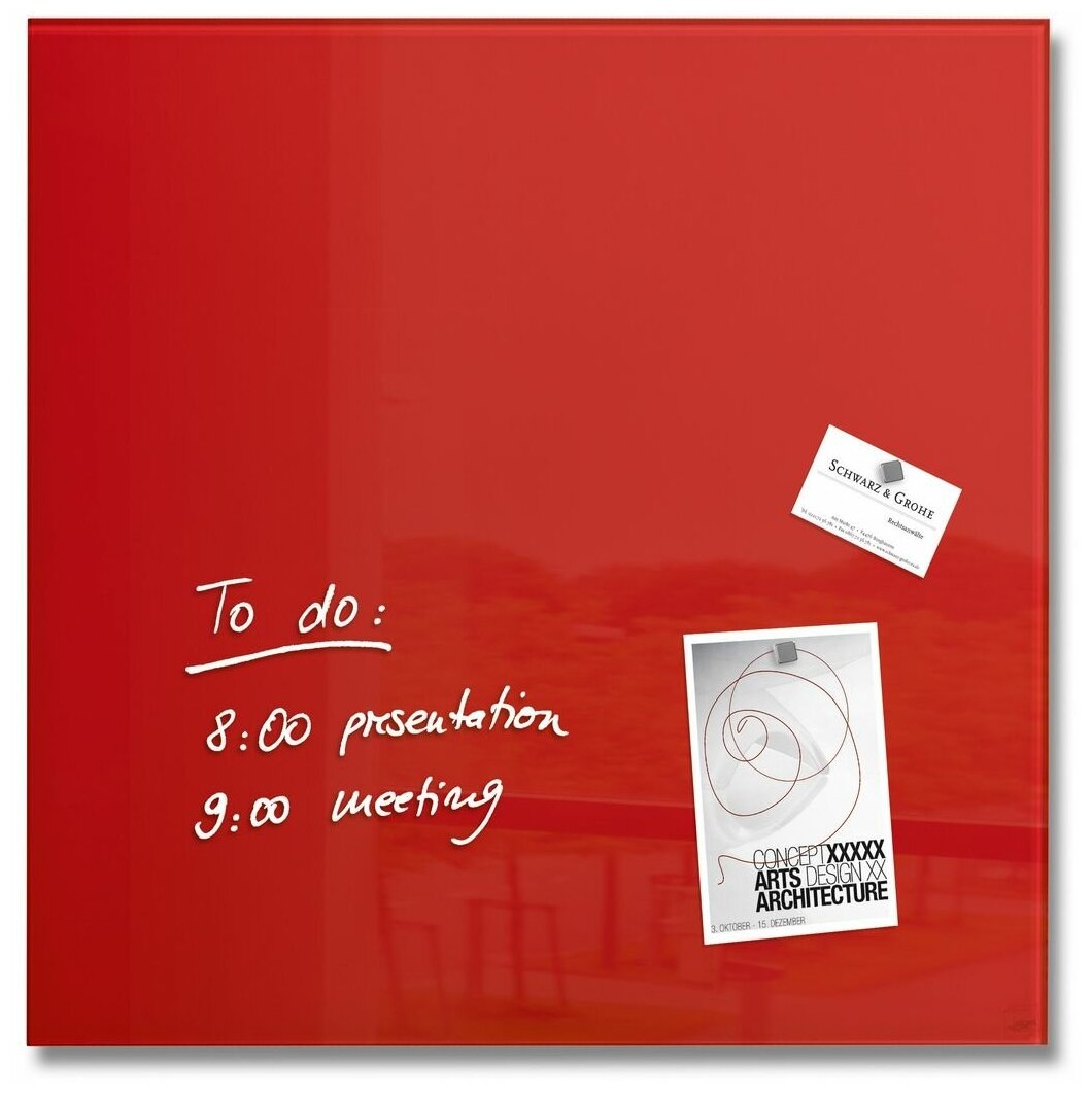 Купить Магнитно-маркерная стеклянная доска 48х48х1,5см + 3 магнита SIGEL Artverum, красная