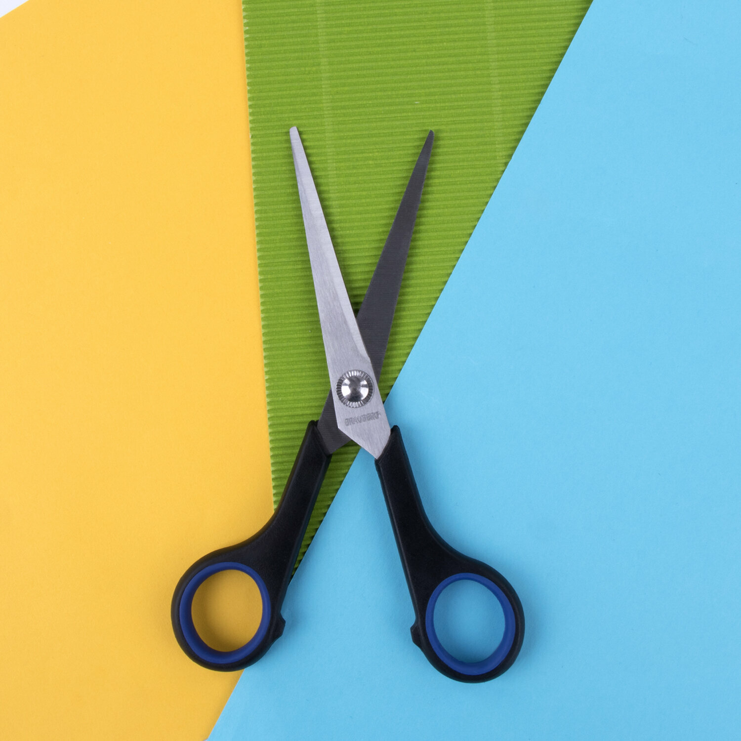 Купить Ножницы канцелярские универсальные для бумаги и картона Brauberg Soft Grip, 165 мм, черно-синие, резиновые вставки, 3-х сторонняя заточка, 230761