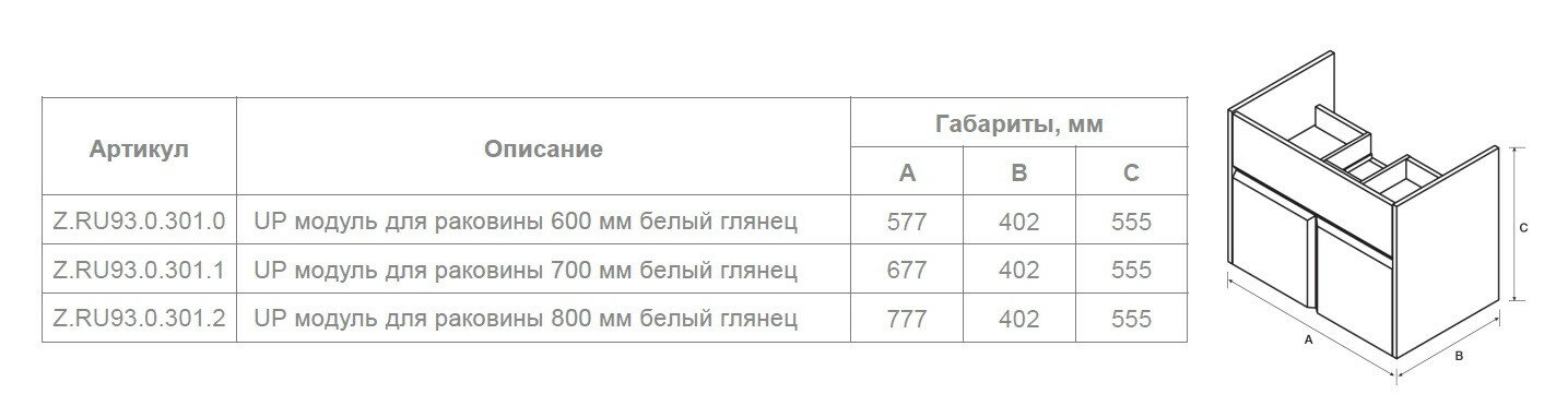 ZRU9303010 UP модуль для раковины белый глянец 600мм