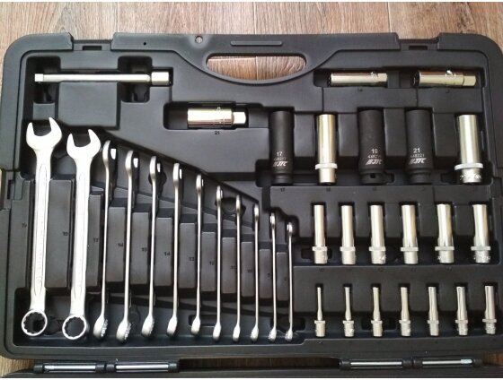 Возможно отмечу не особо сильную фиксацию головок на отвертке, довольно часто в torx бывает что головка отстегивается и остается на болте. Но это так у многих я видел. Кто-то говорит что не особо аккуратная шлифовка гаечных ключей, но я проблем с этим не испытываю. Может отмечу что не хватает шестигранников побольше размером для масляного сливного болта. |