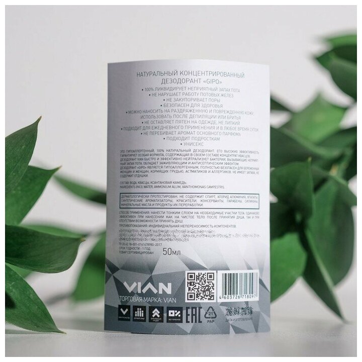 Натуральный концентрированный дезодорант VIAN "GIPO", 50 мл.