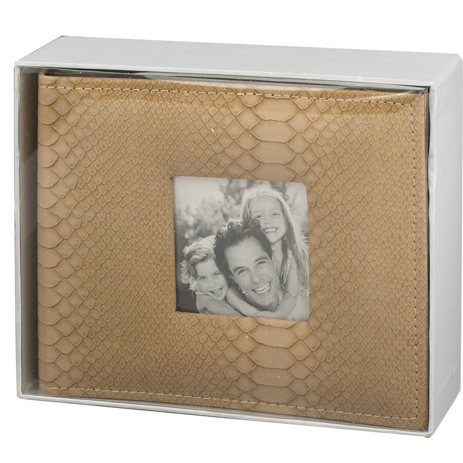 Фотоальбом BRAUBERG на 100 фотографий 10х15 см, обложка под кожу рептилии, бумажные страницы, бокс, бежевый, 390694, 390694
