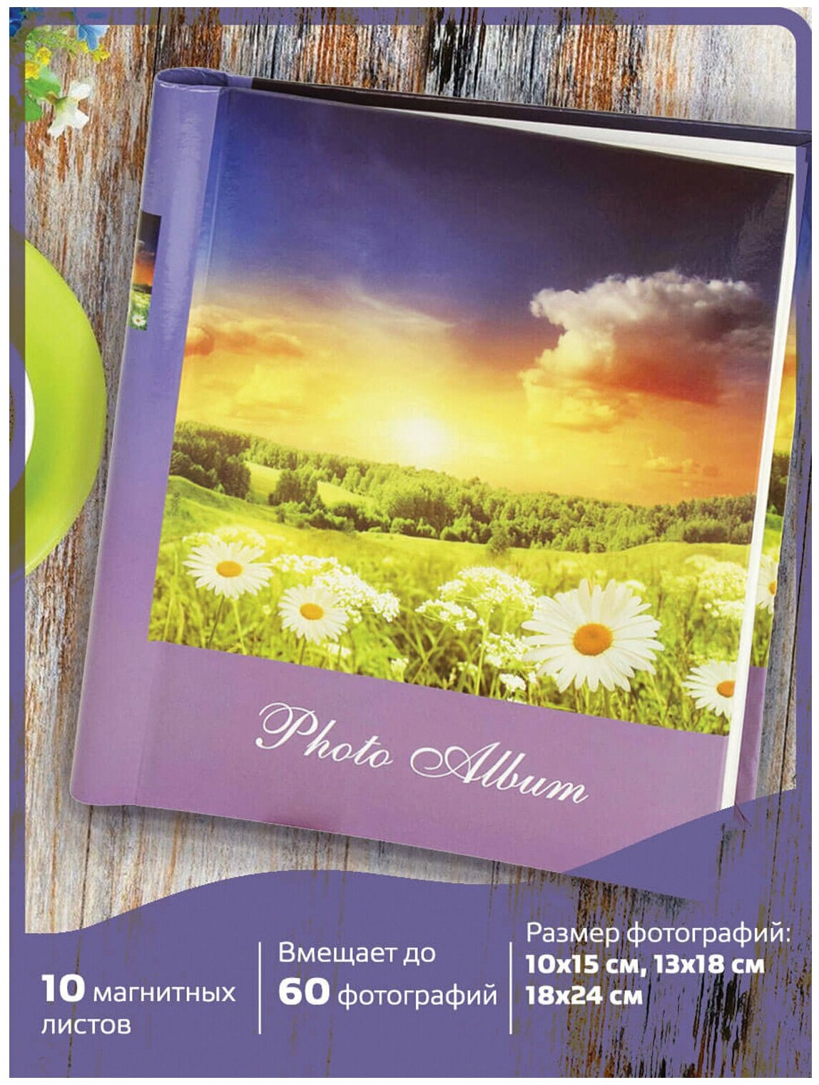 Купить BRAUBERG Фотоальбом на 10 магнитных листов, 23х28 см, "Рассвет", фиолетовый, 390684