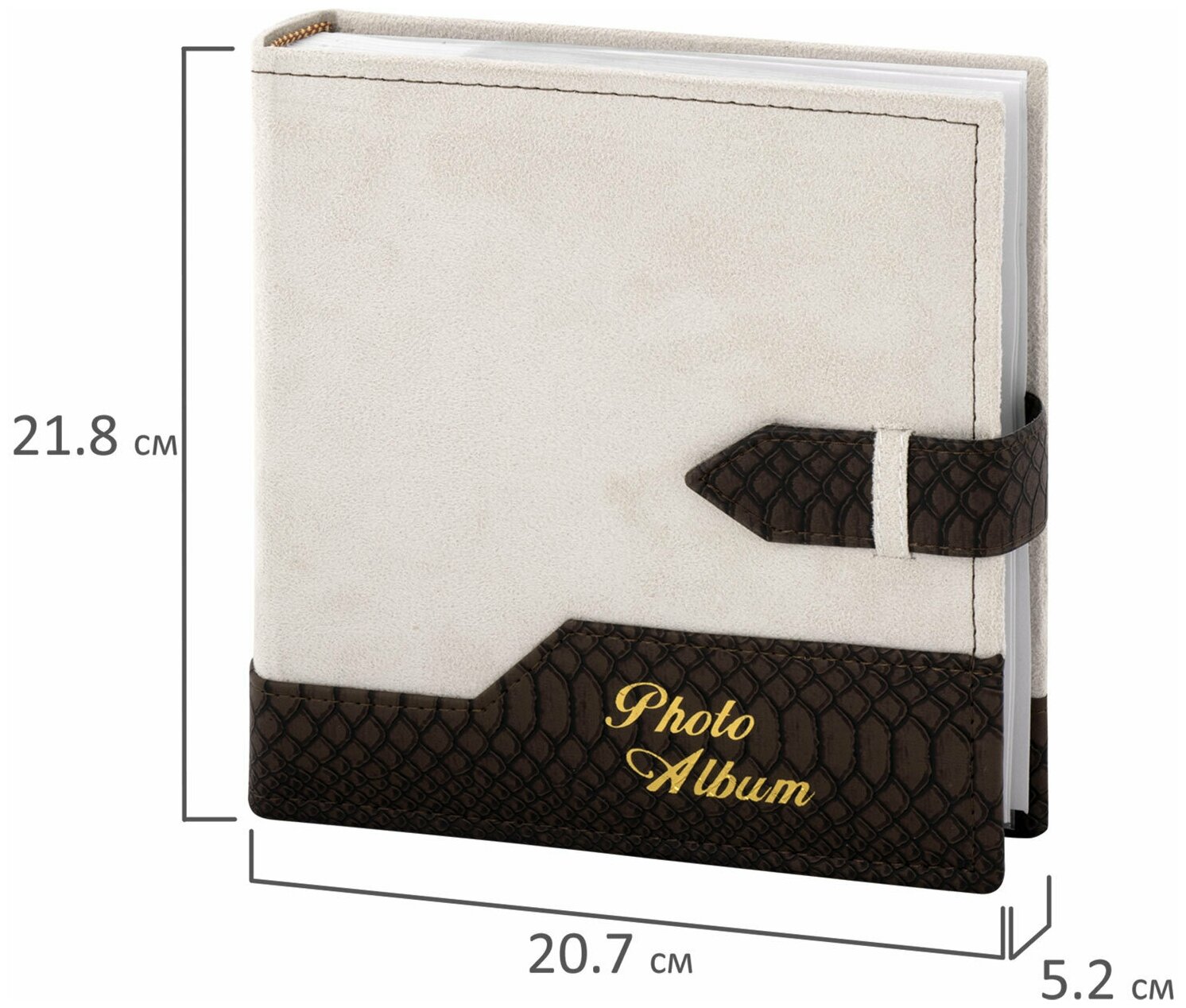 Фотоальбом BRAUBERG на 200 фотографий 10×15 см, под замшу, бумажные страницы, бокс, беж с коричневым, 390679