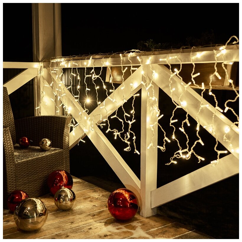 Гирлянда новогодняя светодиодная Neon-Night Дождь-штора 144 LED, 1,5х1,5м с контроллером, теплое белое свечение