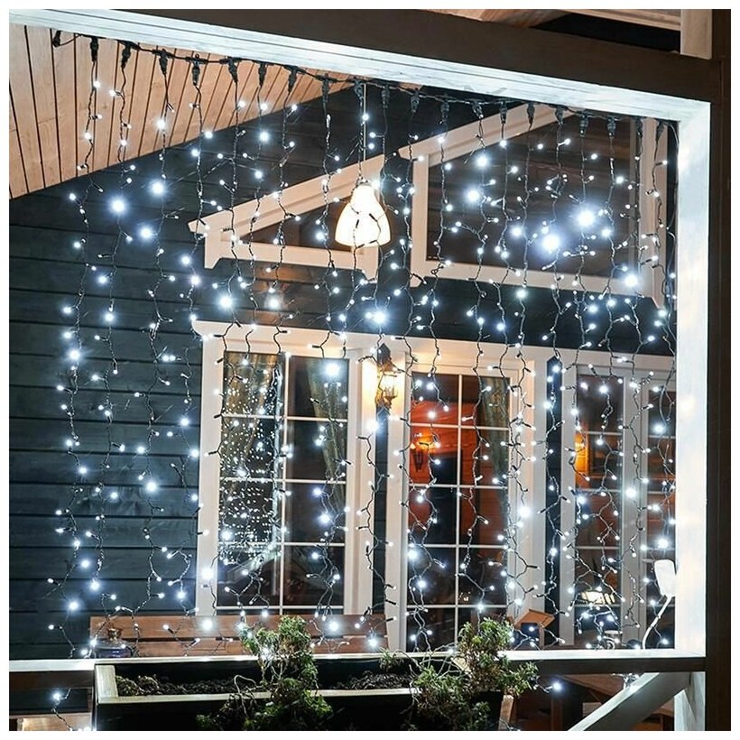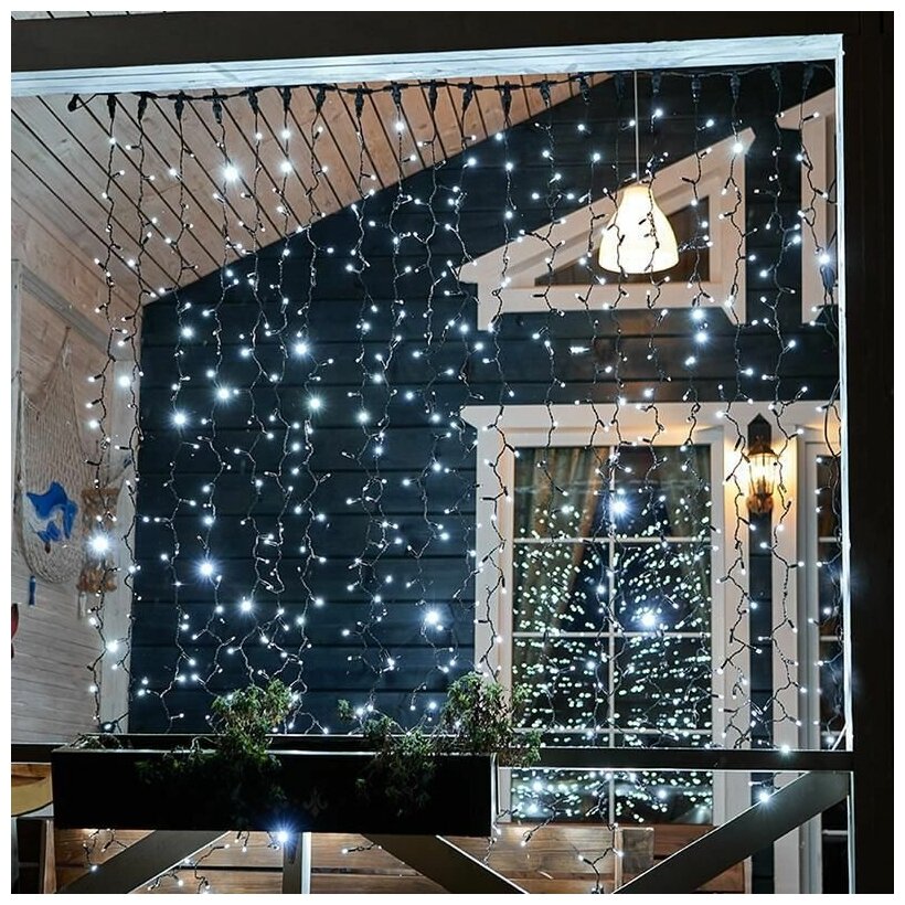 Светодиодная гирлянда Neon-night "Дождь" 2х3 м, 760 белых светодиодов, постоянное свечение, черный провод