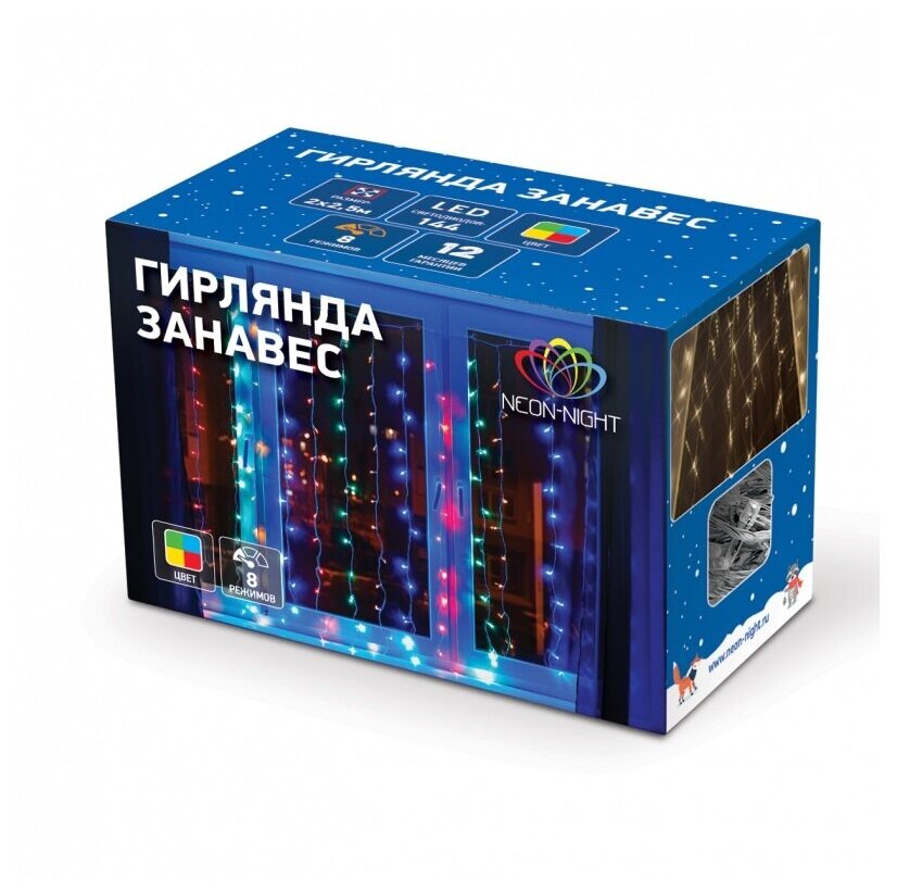 Гирлянда новогодняя светодиодная Neon-Night Дождь-штора 144 LED, 1.5х1.5 м с контроллером, мультиколор свечение