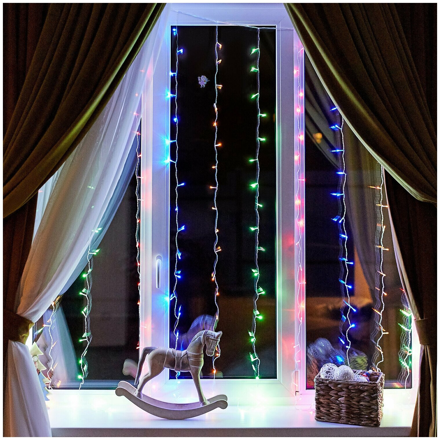 Купить Гирлянда 2 х 2 м, 300 ламп, разноцветный/прозрачный провод/Гирлянда штора/Гирлянда занавес удлинитель В подарок