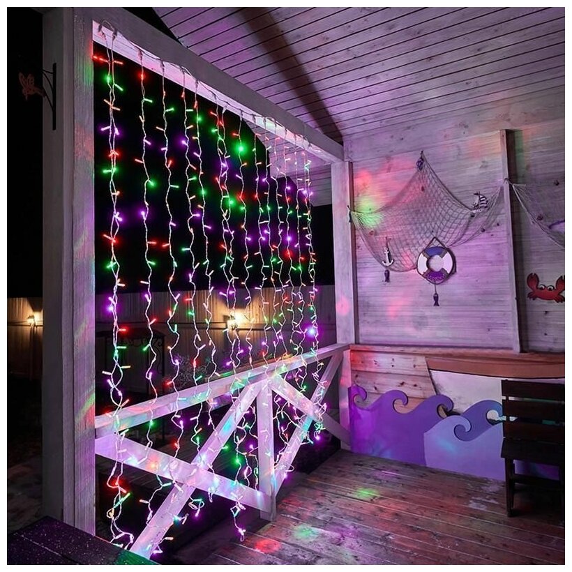 Светодиодная гирлянда NEON-NIGHT "Дождь" 2.5х2 м, 8 режимов, 300 разноцветных светодиодов, прозрачный провод