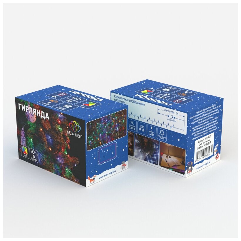 Светодиодная гирлянда NEON-NIGHT Твинкл-лайт 6 м 8 режимов свечение мультиколор 303-029