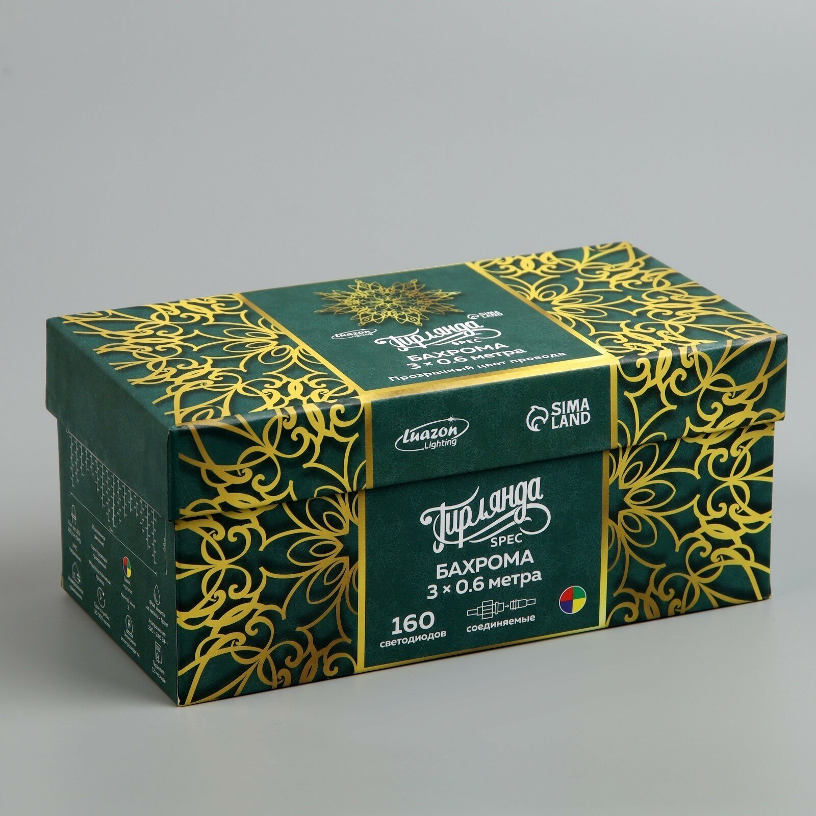 Гирлянда «Бахрома» 3 × 0.6 м, IP44, УМС, прозрачная нить, 160 SMD-LED, свечение мульти, 220 В (арт. 4356988)