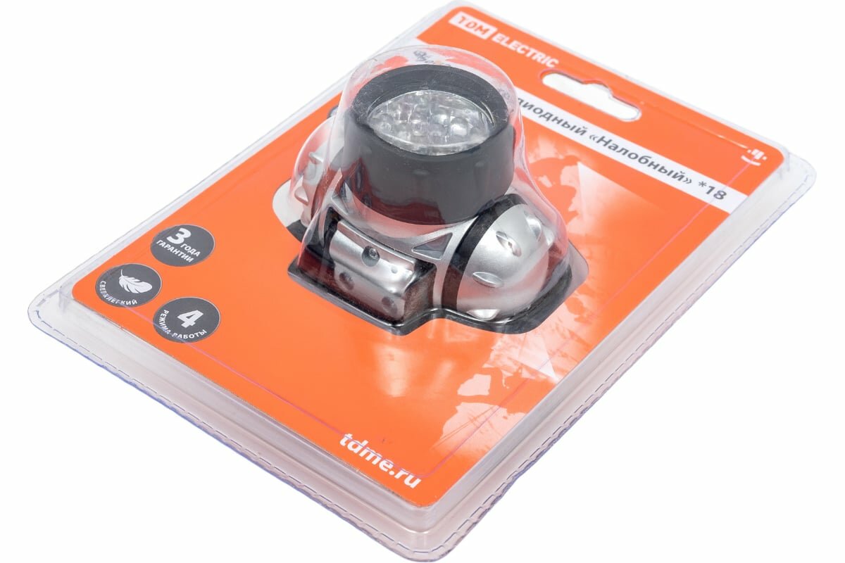 TDM SQ0350-0004 Фонарь светодиодный "Налобный", 18 светодиодов 54 лм/Вт, бат. 3*AAA