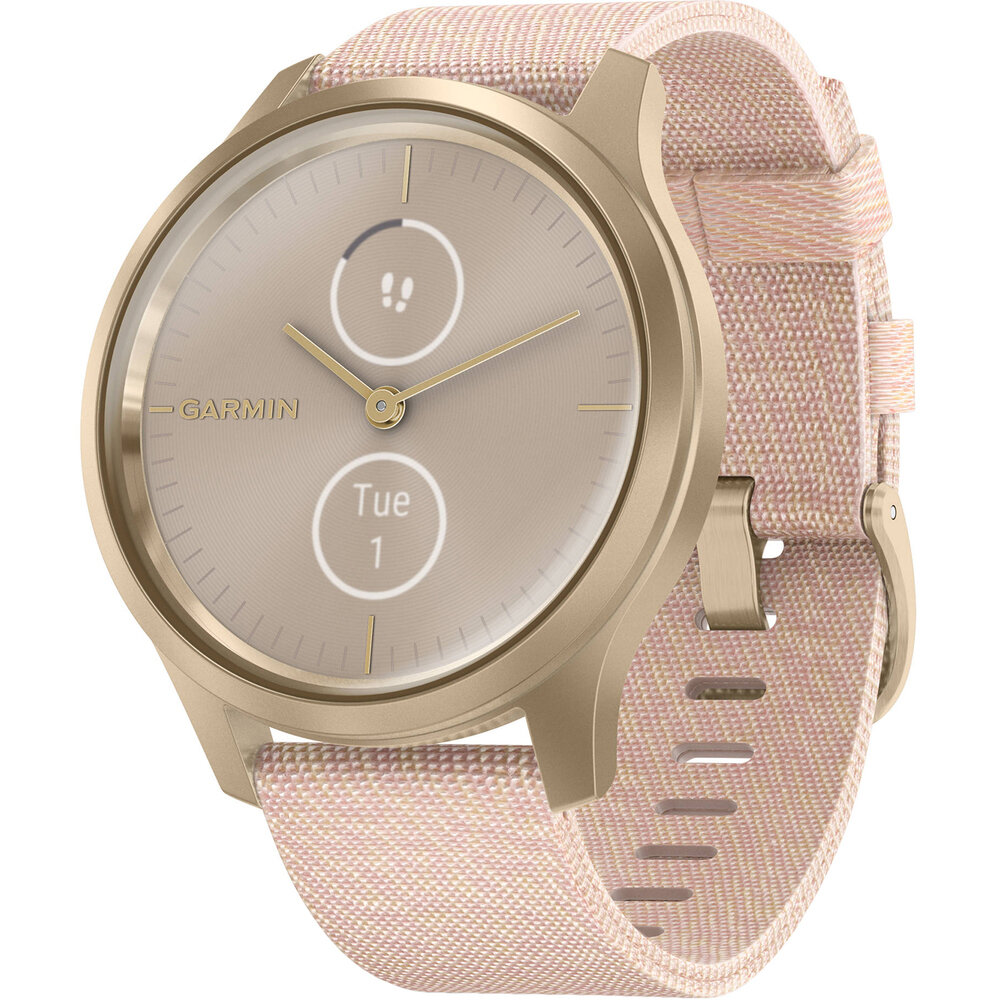 Купить Часы Garmin Vivomove Style, Cветло-Золотистый (плетеный нейлоновый розовый ремешок)