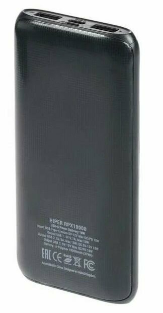 Внешний аккумулятор HIPER RPX10000 Li-Pol 10000 mAh QC 3A+2.4A 2xUSB 1xType-C черный