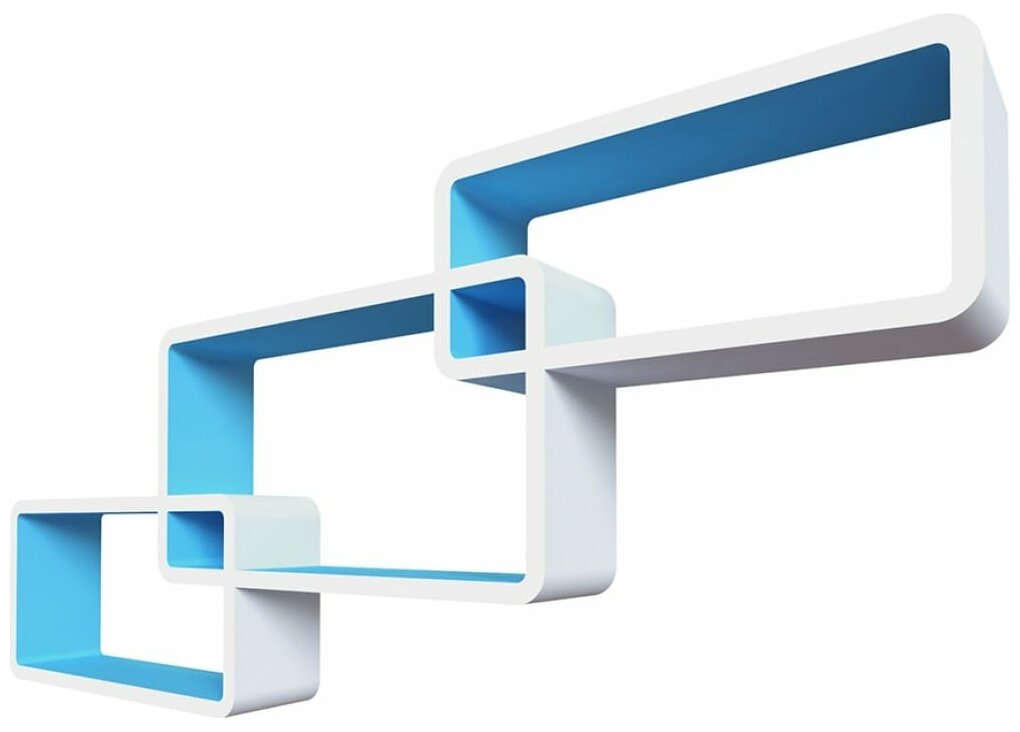 QWERTY Комплект полок "Нью-Йорк" Правый цвет белый/голубой, 44х24х10см; 40х20х10см; 36х16х10см; толщина 1,5см интересное: