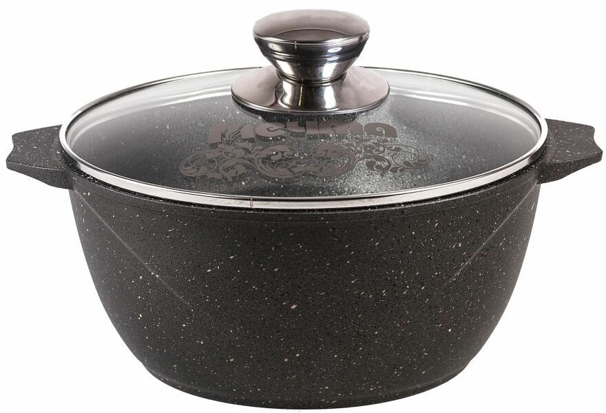 Кастрюля Мечта Гранит Black литая с антипригарным покрытием, со стеклянной крышкой, 6л, гранит black