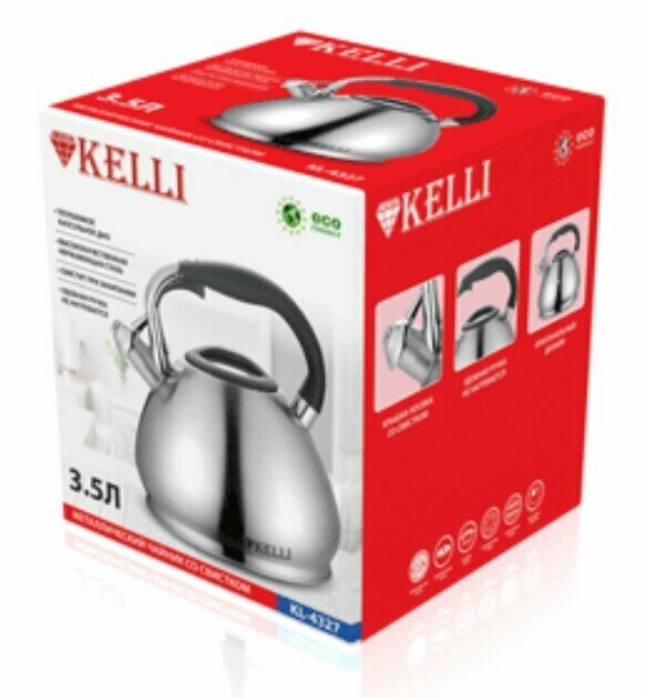 Чайник для плиты Kelli KL-4327 со свистком / 3.5 л / нержавеющая сталь