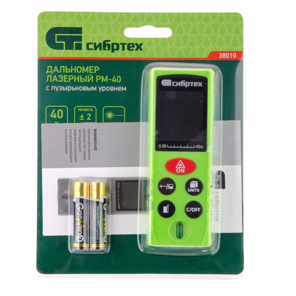Лазерный дальномер PM-40, 40 м, с пузырьковым уровнем, Сибртех, 38010