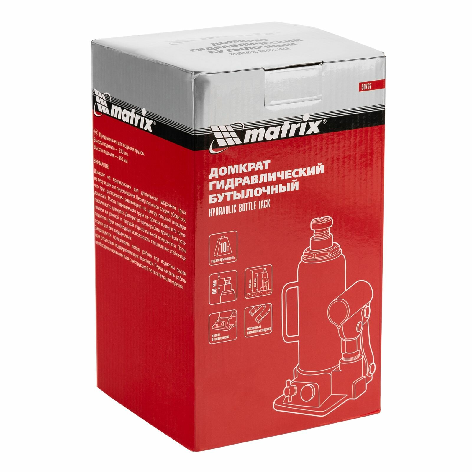 Домкрат гидравлический бутылочный Matrix 50767, 10 т, h подъема 230–460 мм