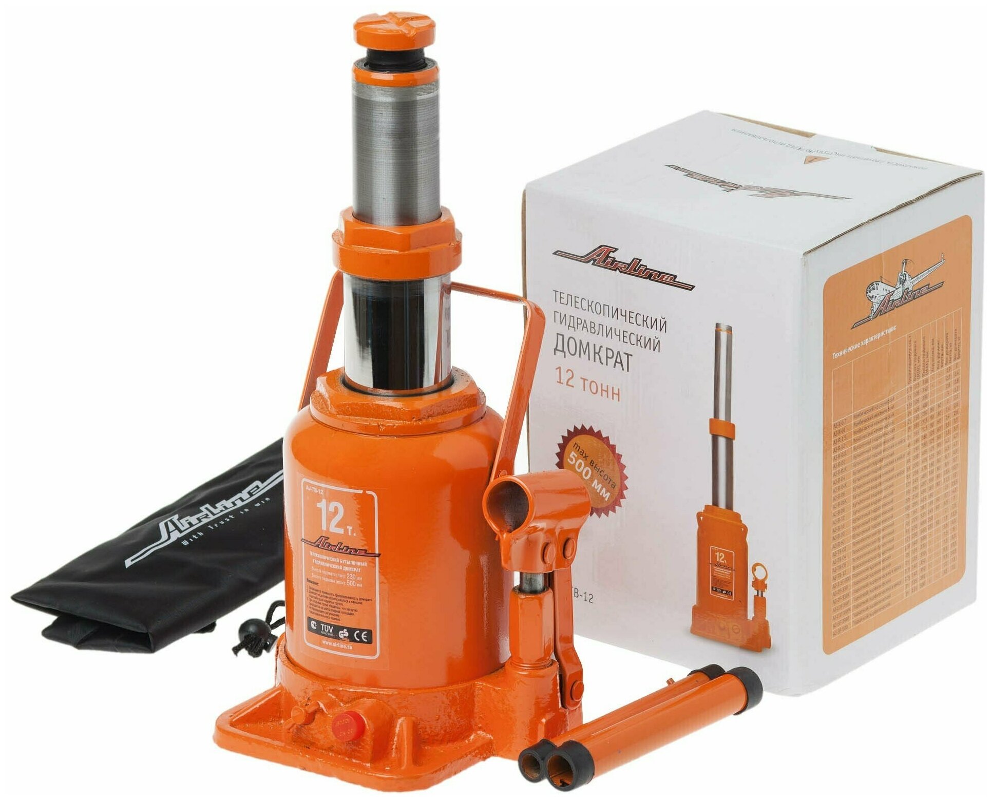AIRLINE AJTB12 Домкрат телескопич. 12т в сумке (MIN - 230 мм, MAX - 500 мм) (AJ-TB-12)