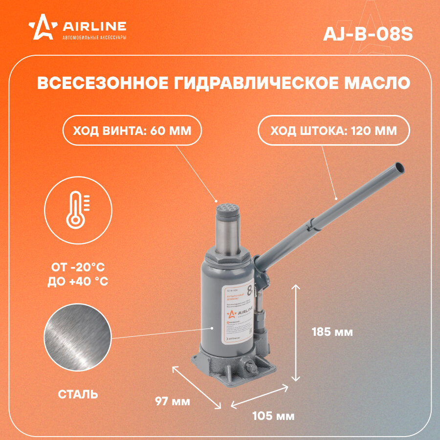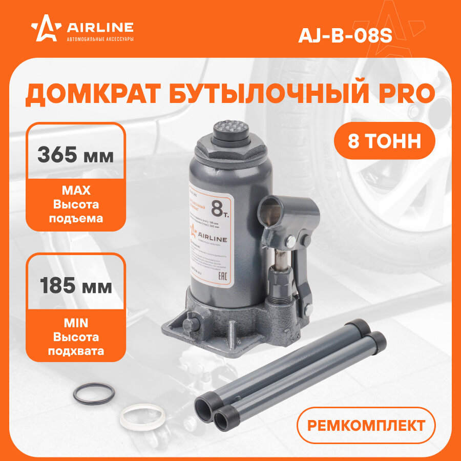 AIRLINE AJ-B-08S AJ-B-08S_домкрат бутылочный! 8т, min 200мм, max 405мм\