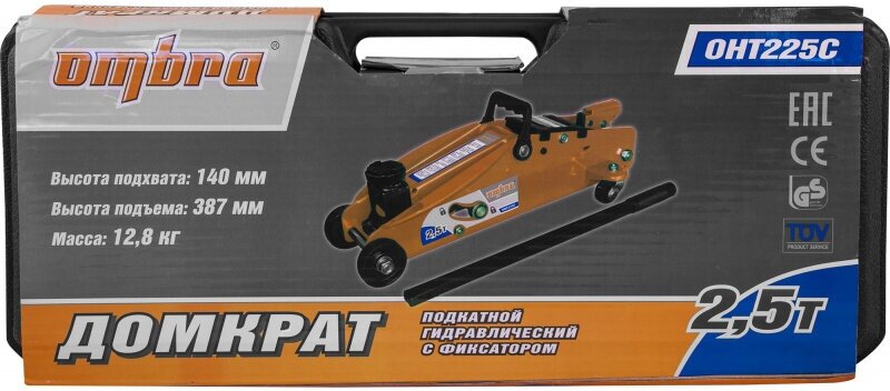 Домкрат Ombra OHT225 C, подкатной, 2.5 т, подъем 140-387 мм, с фиксатором, в кейсе 2922692