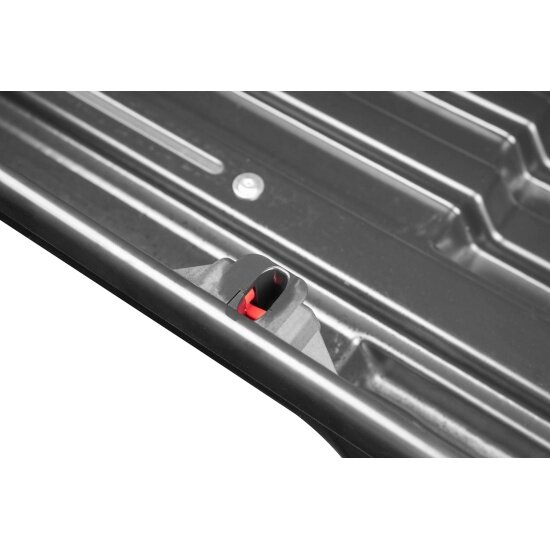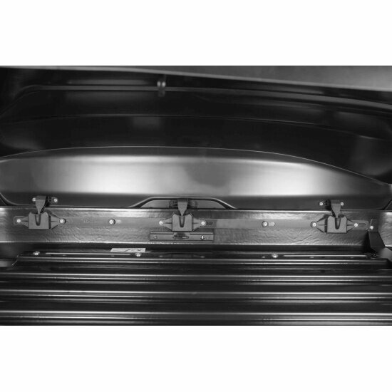 Это может быть и плюсом, если у вас маленькая машина - бокс хорошо смотрится даже на мелких хэтчах и прочем B-классе. Крышка из довольно тонкого пластика, но на других боксах что щупал та же история. Подклинивает задняя часть крышки, точнее плотно садится на днище, открывать приходится с некоторым усилием. Не криминал, но такой вот нюанс. По отзывам/обзорам штатные крепления нужно периодически подтягивать, чтобы бокс не начал ездить по перекладинам. Как вариант - докупить скобы, но это +1к денег, и скобы не самый удобный вид крепежа. |