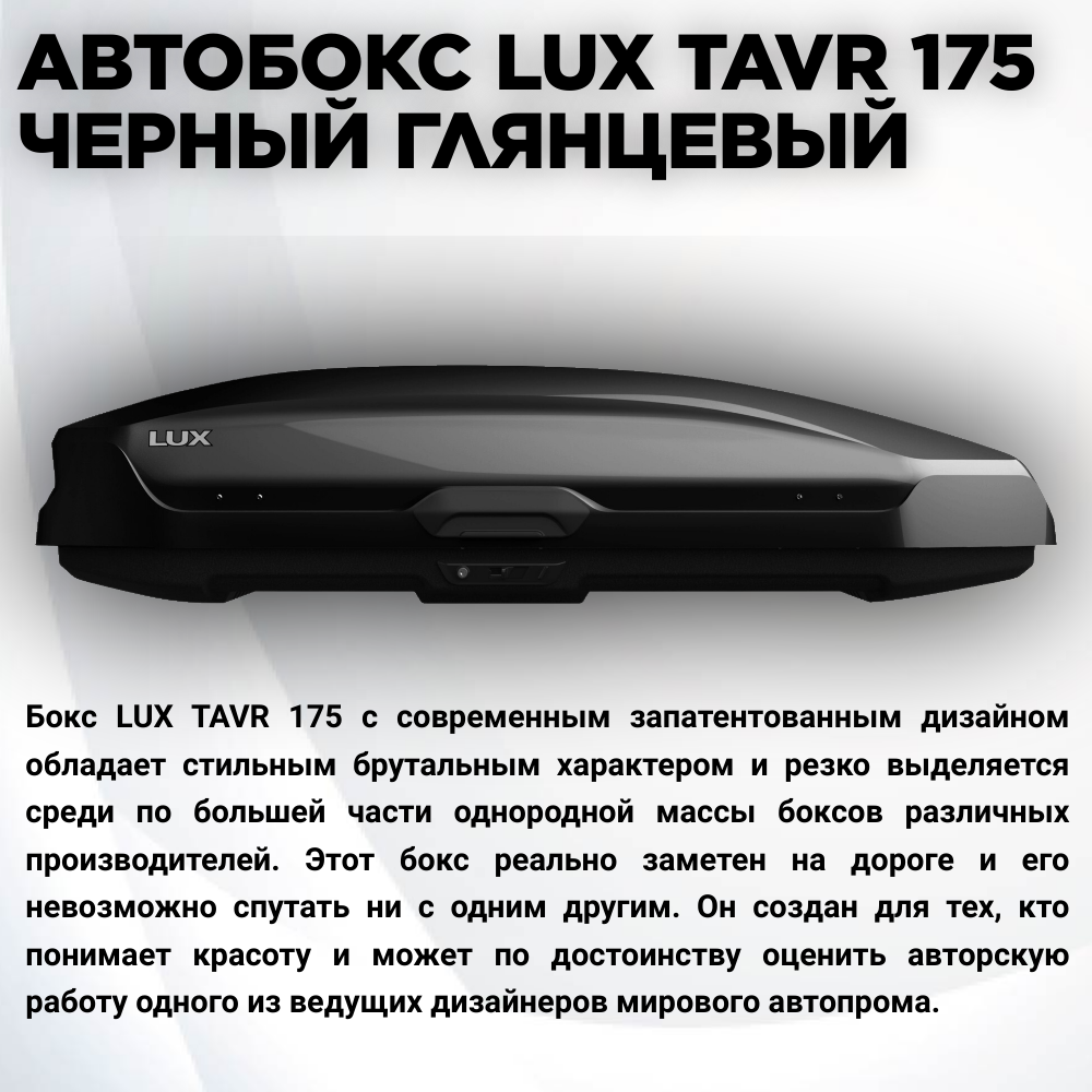 Бокс на крышу LUX TAVR 175, 450л, черный глянцевый, 175х85х40, с двухсторонним открыванием, арт:LUX-791057