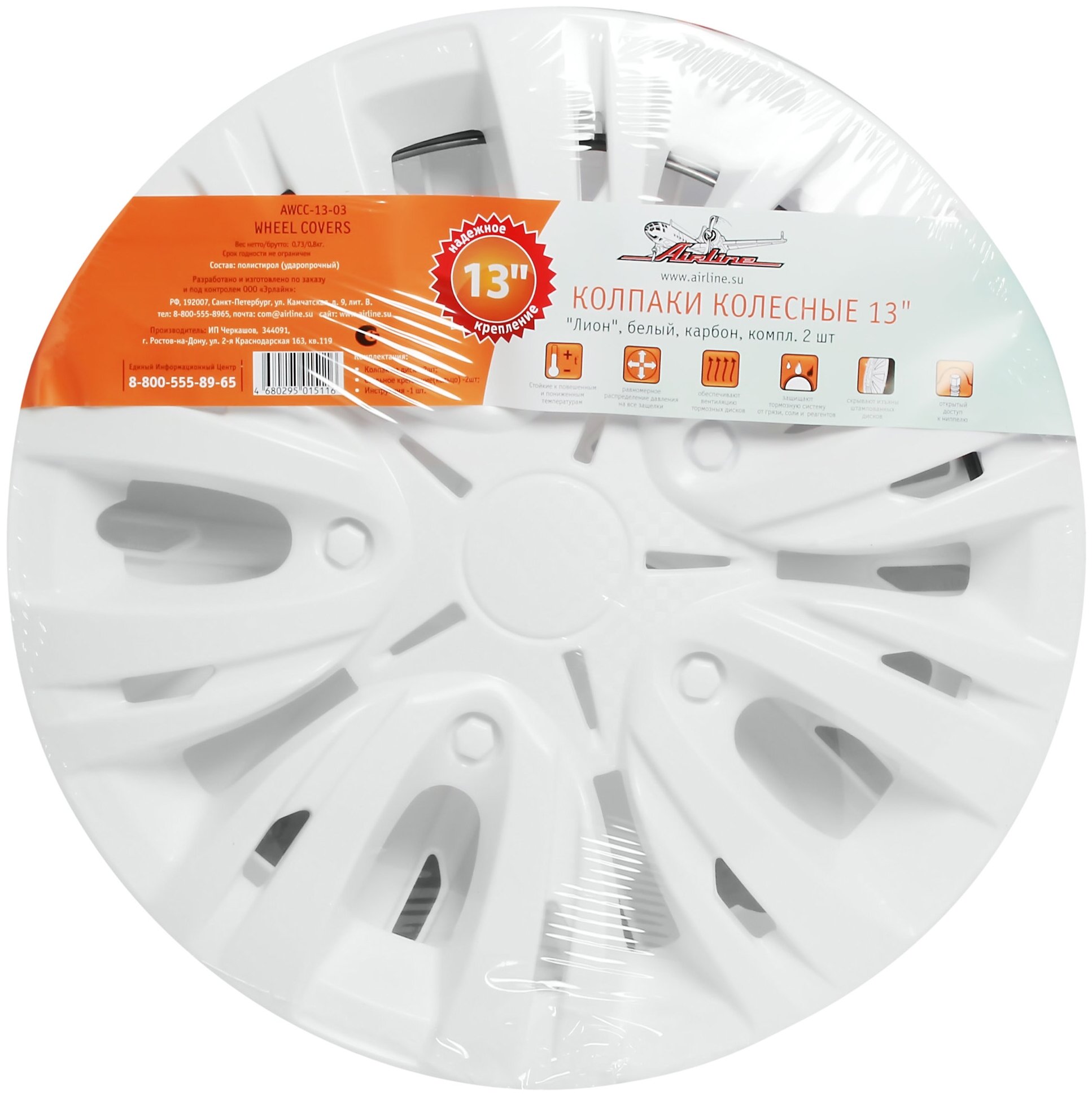 Колпаки колесные 13'' ''лион'', белый, карбон, компл. 2шт. Airline AWCC1303