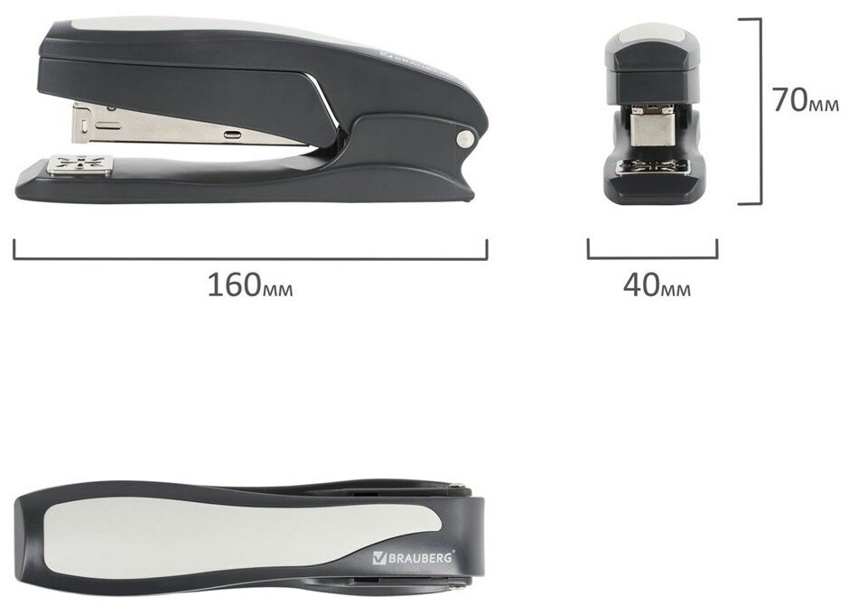 Степлер №24/6, 26/6 BRAUBERG B-360, до 20 листов, С функцией брошюрования, черно-серый, 226806