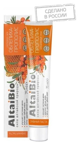 AltaiBio Зубная паста для ежедневного ухода за зубами и деснами Облепиха-Прополис, 75 мл