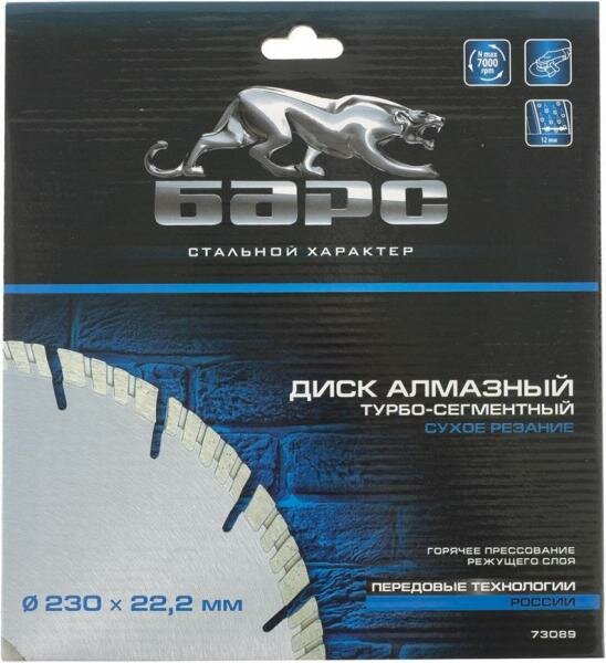 Диск алмазный Барс 73089, сегментный, сухой рез, ф230х22,2 мм Барс 3803146 .