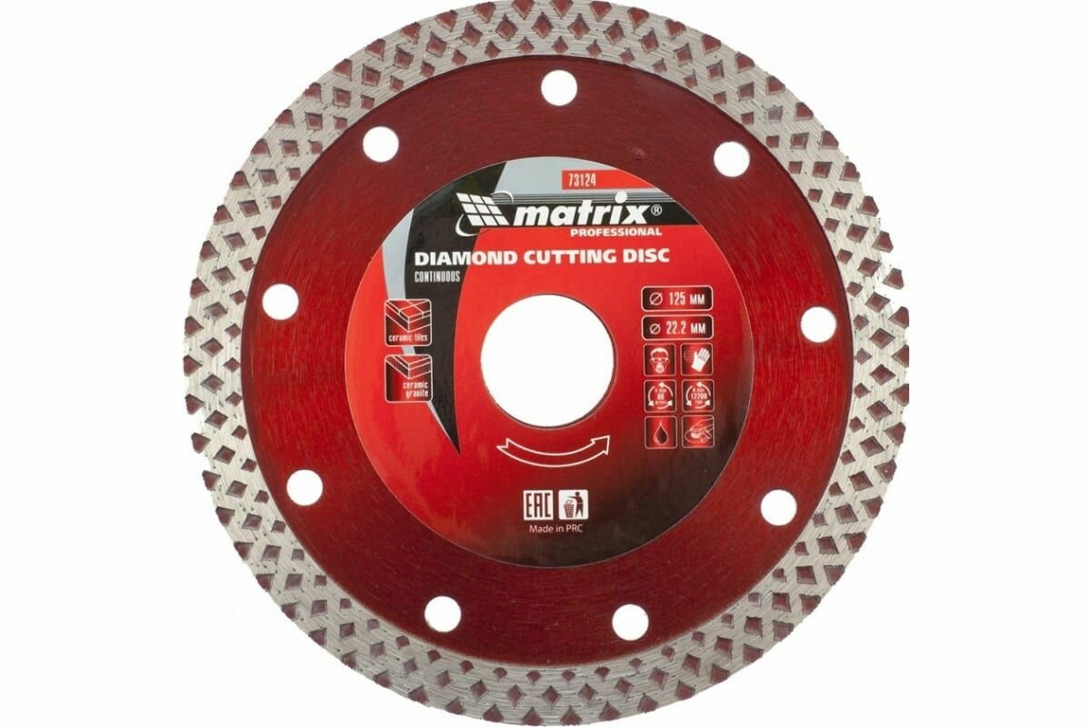 Диск алмазный Matrix 73128 отрезной сплошной, 180 х 22,2 мм, сухое/мокрое резание