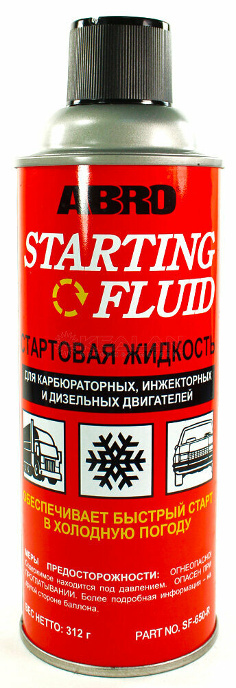 Средство Для Запуска Двигателя Применяется Во Всех Бензиновых (В Том Числе Двухтактных) И Дизельных Двигателях Для Облегчения Запуска При Температурах До -54с, Аэрозоль 312 Гр ABRO арт. SF650