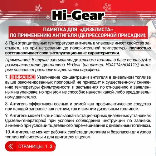 Суперантигель для дизельного топлива Hi-Gear HG3426R 295 мл топливная присадка депрессорная присадка Сделано в России