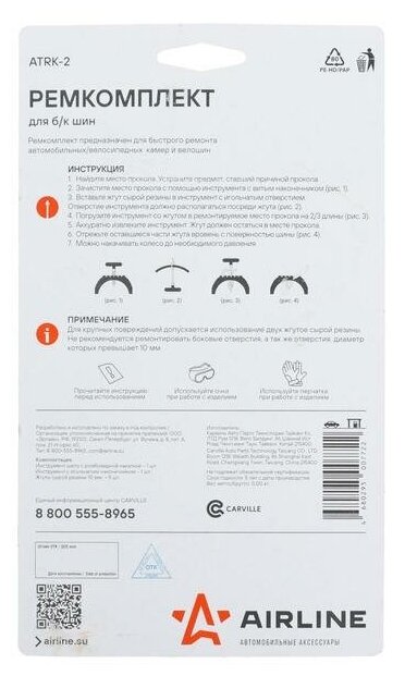 Ремкомплект для ремонта б/к шин AIRLINE, арт. ATRK-2