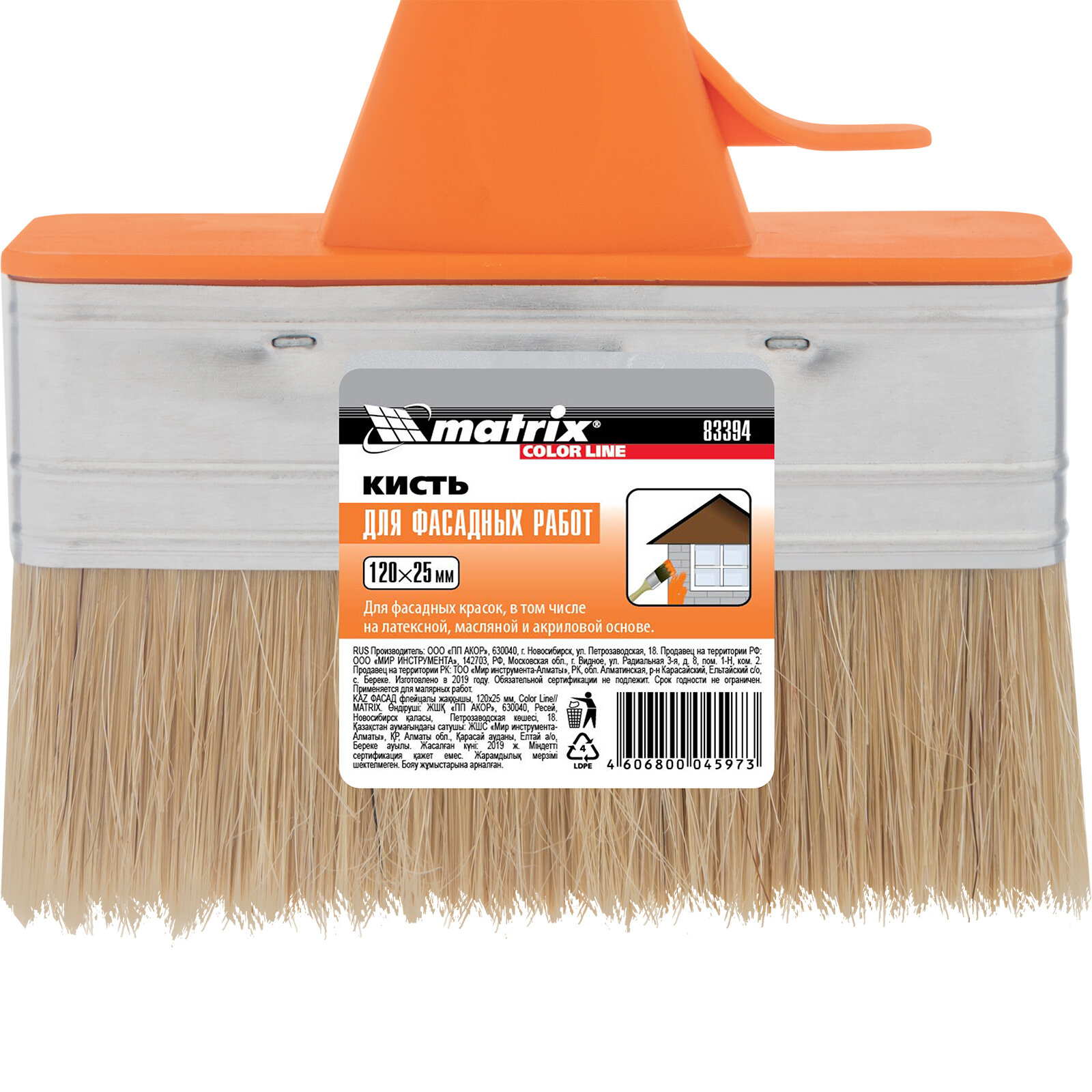 Кисть плоская для фасадных работ, 120 x 25 мм, натуральная щетина, пластиковая рукоятка, MATRIX 83394
