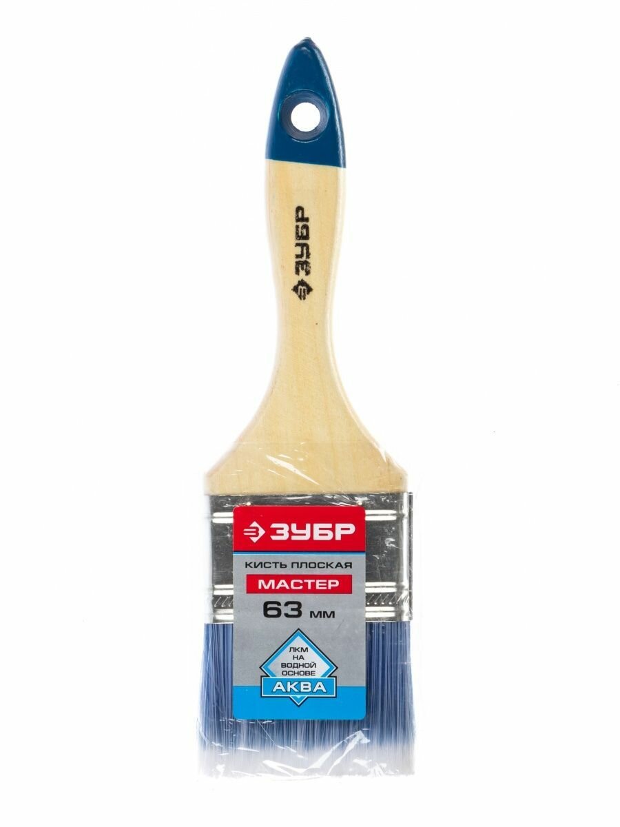 ЗУБР Аква 63 мм, 2,5 светлая искусственная щетина, деревянная ручка, Плоская кисть, мастер (4-01007-063)