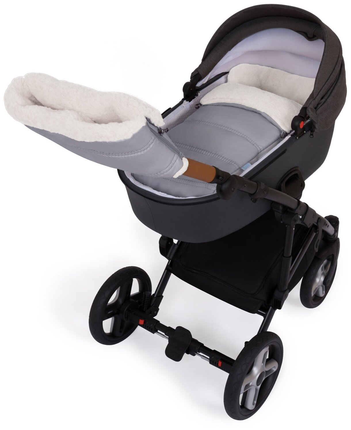 | Плюсы: | Очень теплый конверт на овечьей шерсти. Верх из водонепромокаемой плащевки. Есть много цветов на выбор, я взяла оранжевый, классно смотрится. |