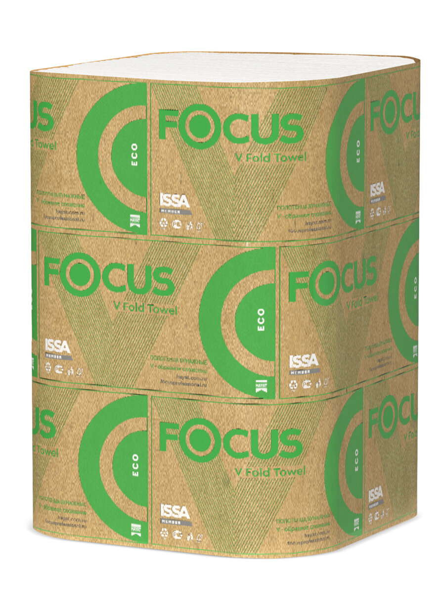 Купить Полотенца бумажные Focus ECO V-сложение 23х23, однослойные 250 листов, 1 пачка