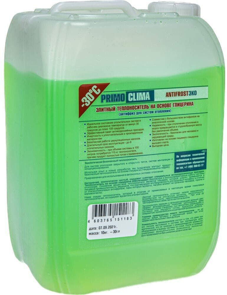 PrimoClima Теплоноситель Primoclima Antifrost (Глицерин) -30C ECO 10 кг канистра (цвет зеленый) интересное: