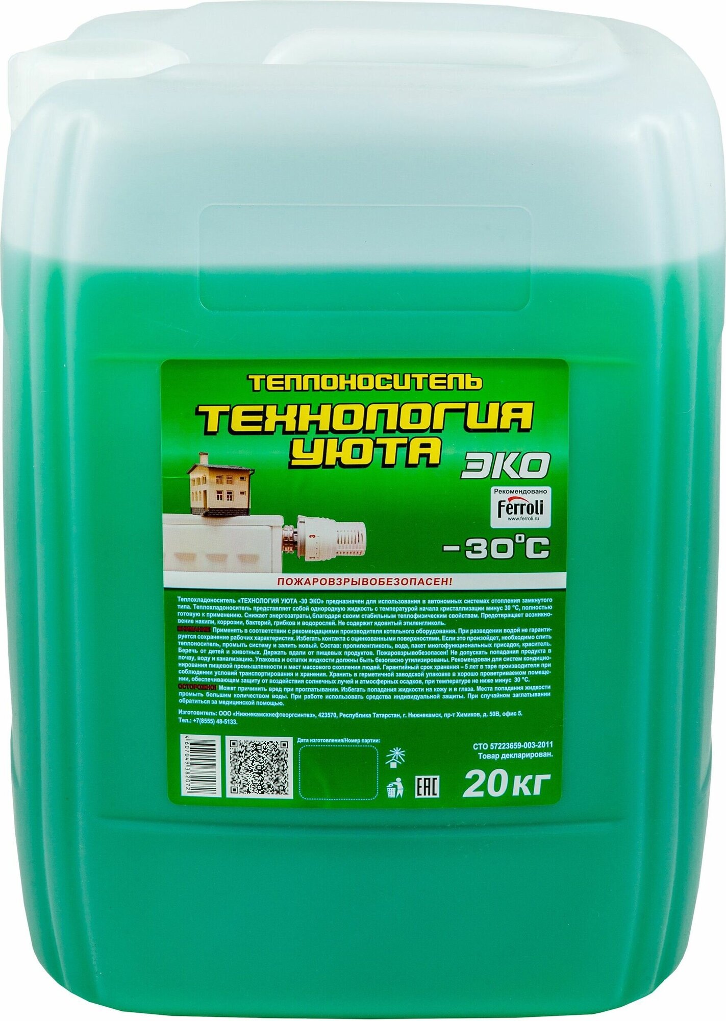 Теплохладоноситель технология уюта (-30) ЭКО на основе пропиленгликоля 20 кг теплоноситель эко пропиленгликоль для системы отопления безопасный