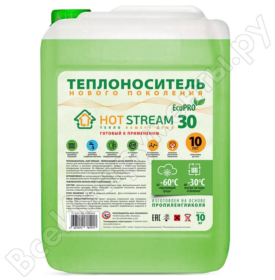 СохранитьТеплоноситель пропиленгликоль Hot Stream EcoPro 30 10 кг интересное:
