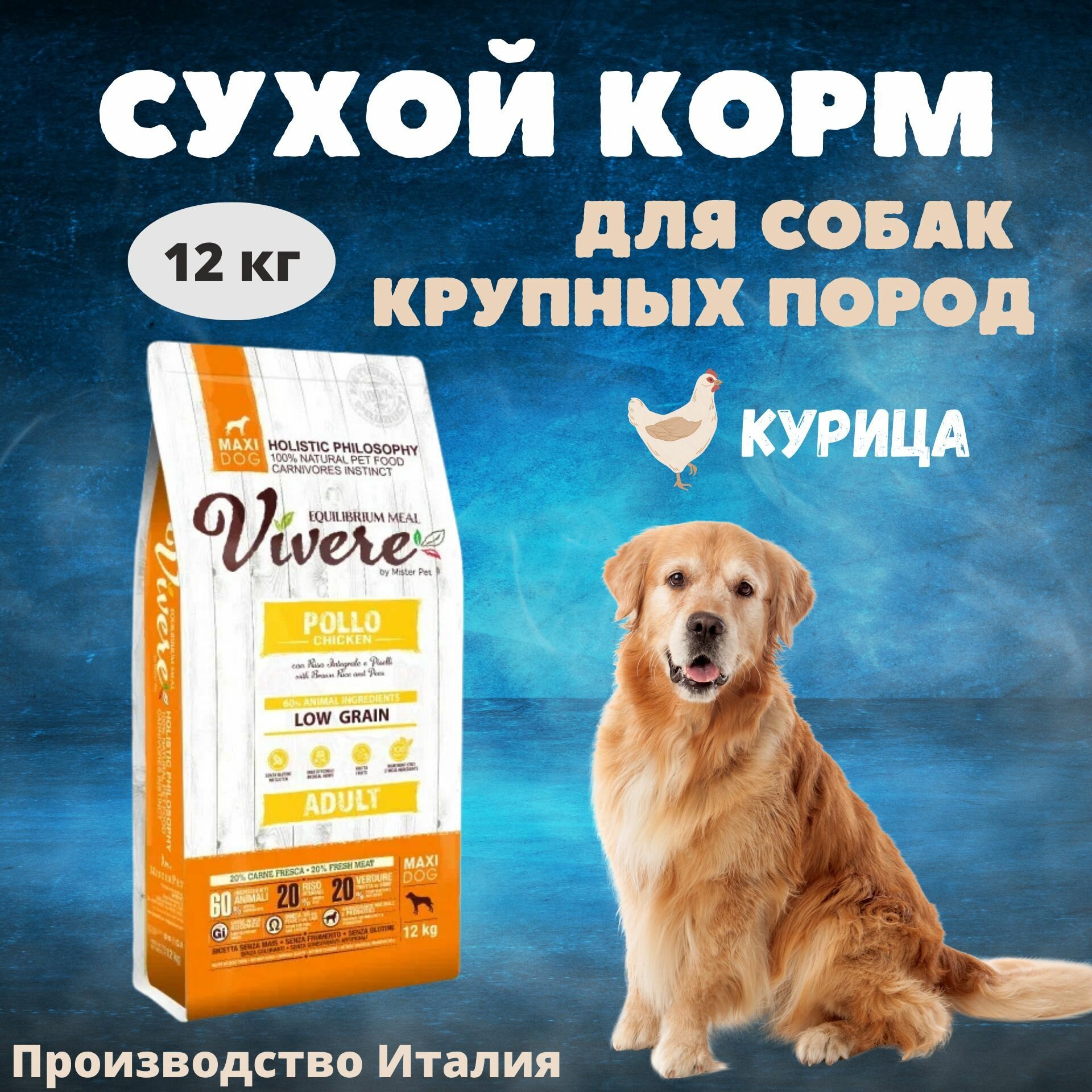 Купить Сухой корм для собак Vivere курица 12 кг (для крупных пород)