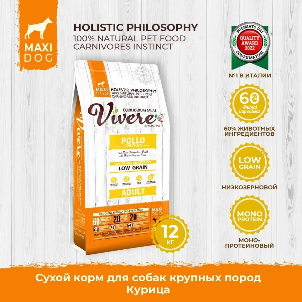 Сухой корм для собак Vivere курица 1 уп. х 12 кг (для крупных пород)