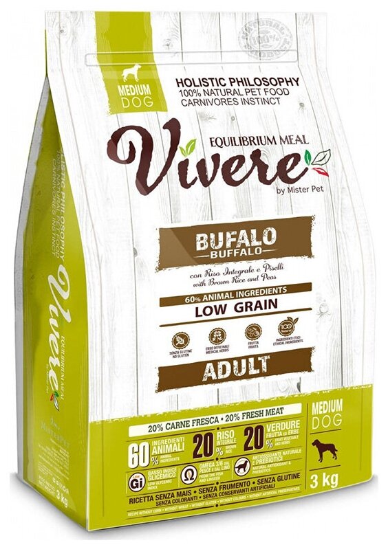 Сухой корм VIVERE LOW GRAIN ADULT MINI BUFFALO низкозерновой для взрослых собак маленьких пород с буйволом (3 кг)