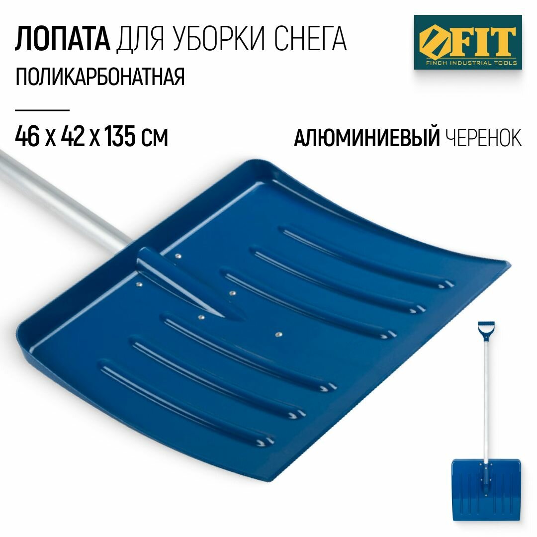 FIT РОС Лопата для уборки снега Профи поликарбонатная, алюминиевый черенок, средняя 460x420x1350 мм .